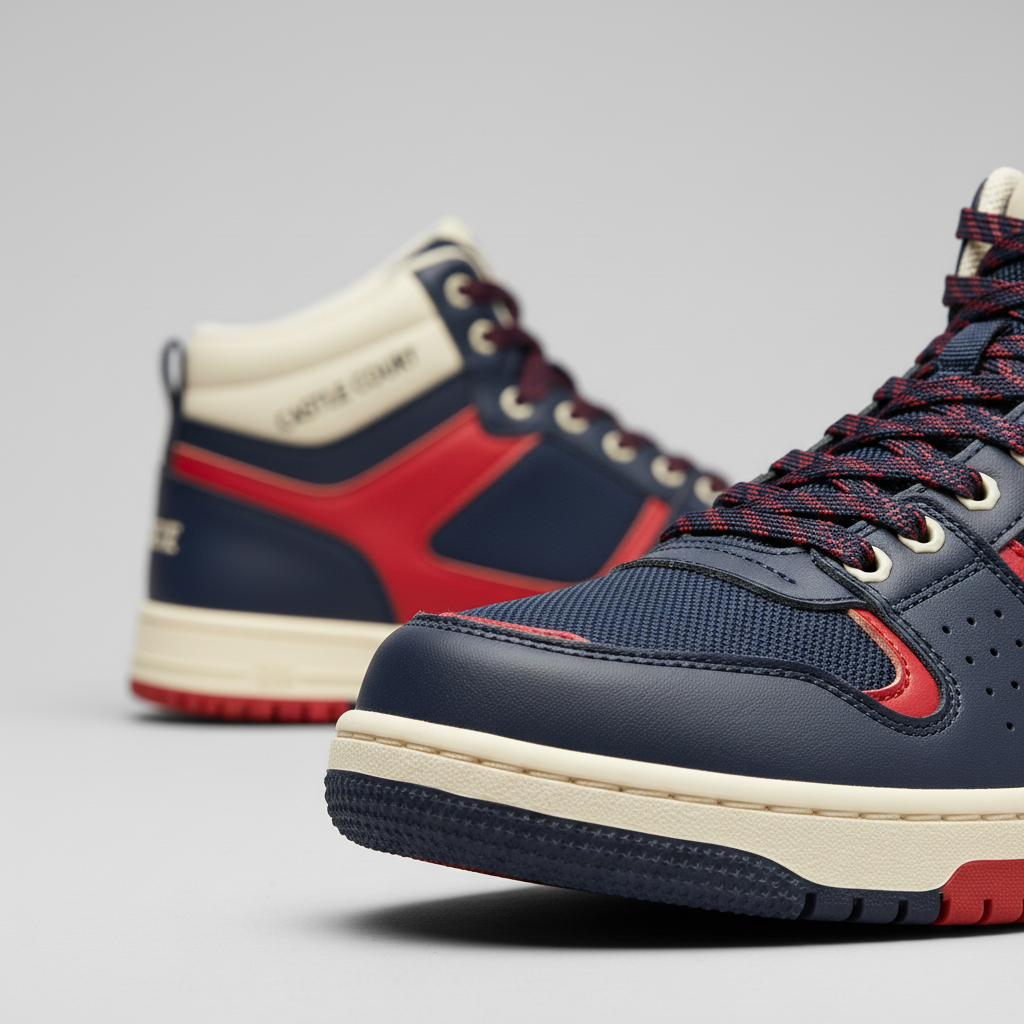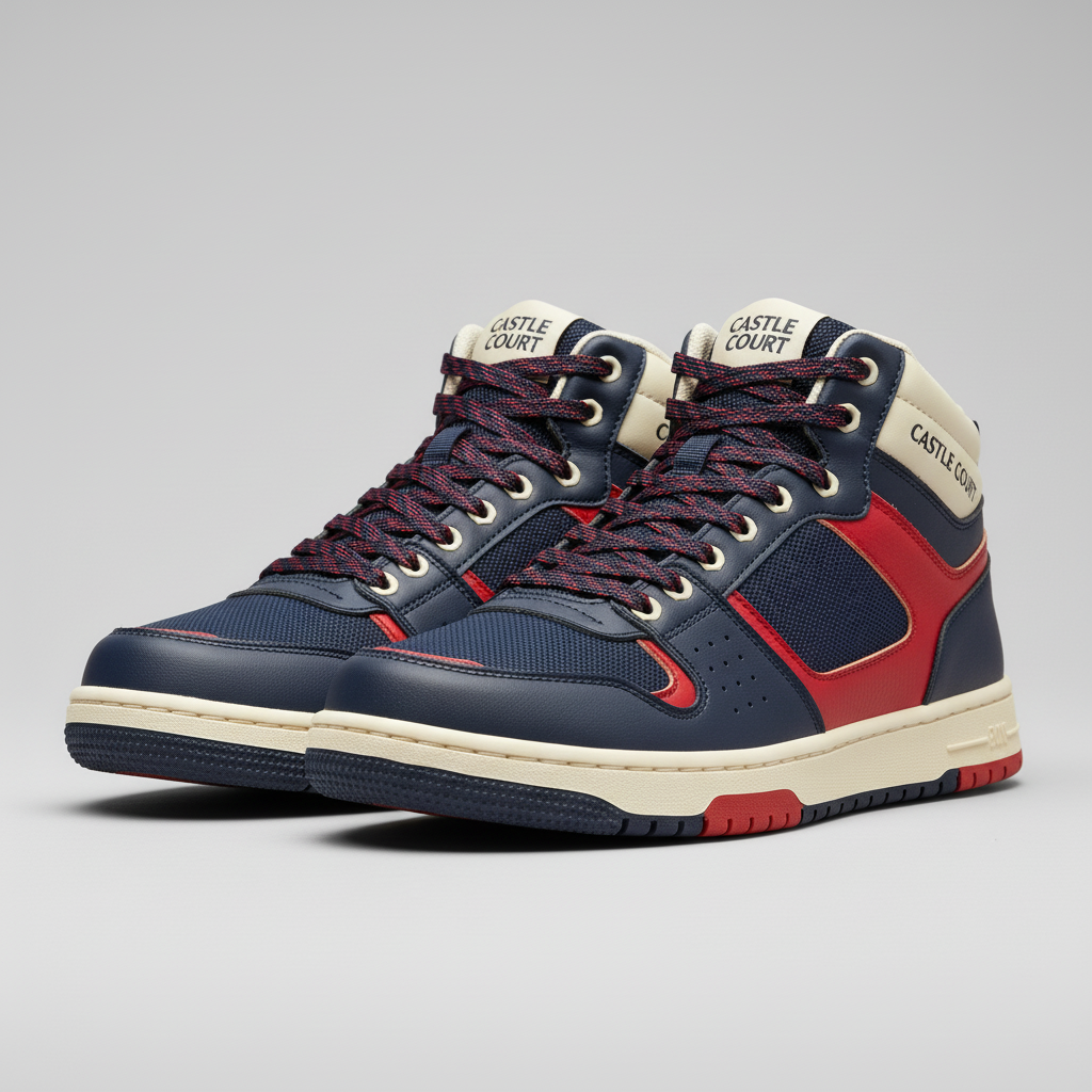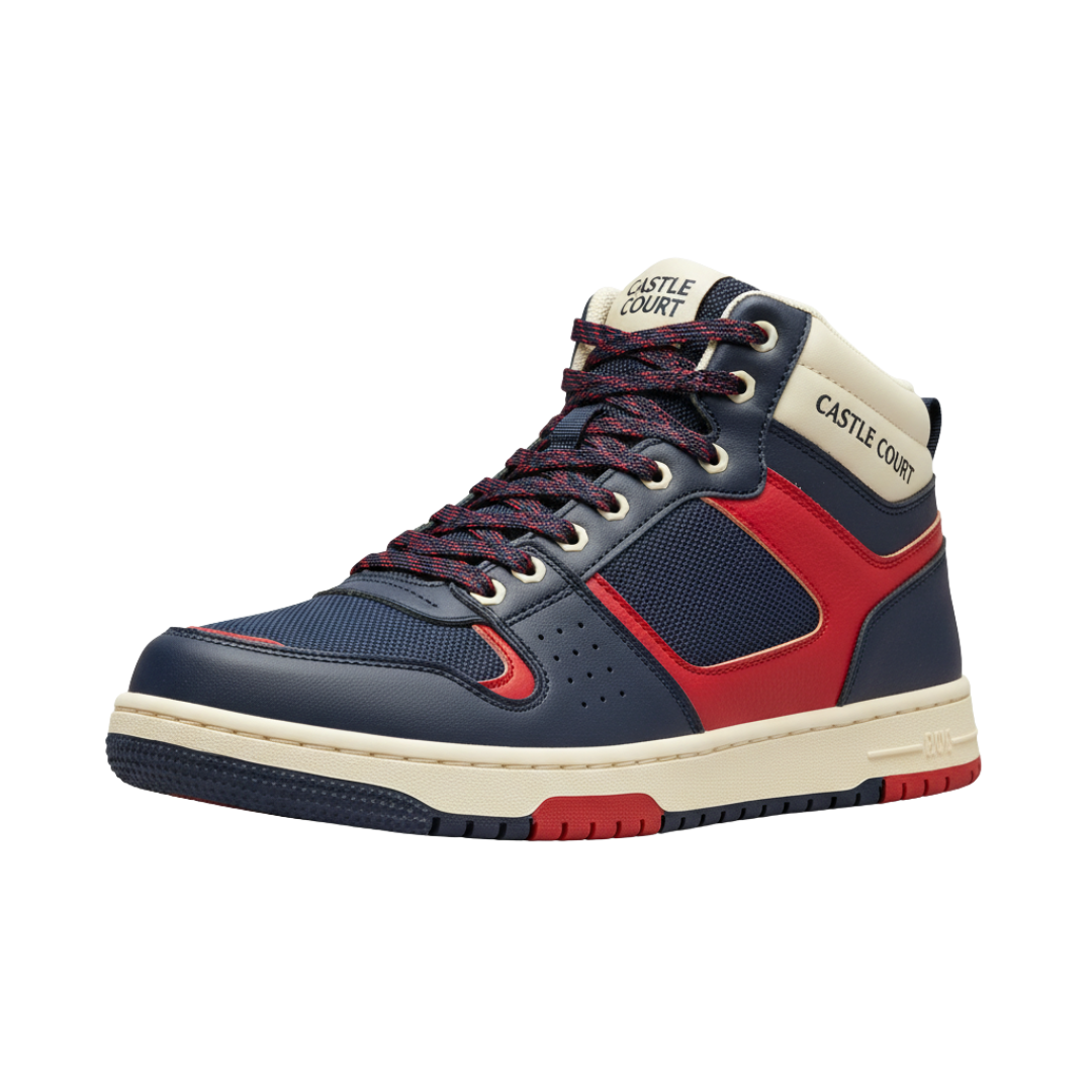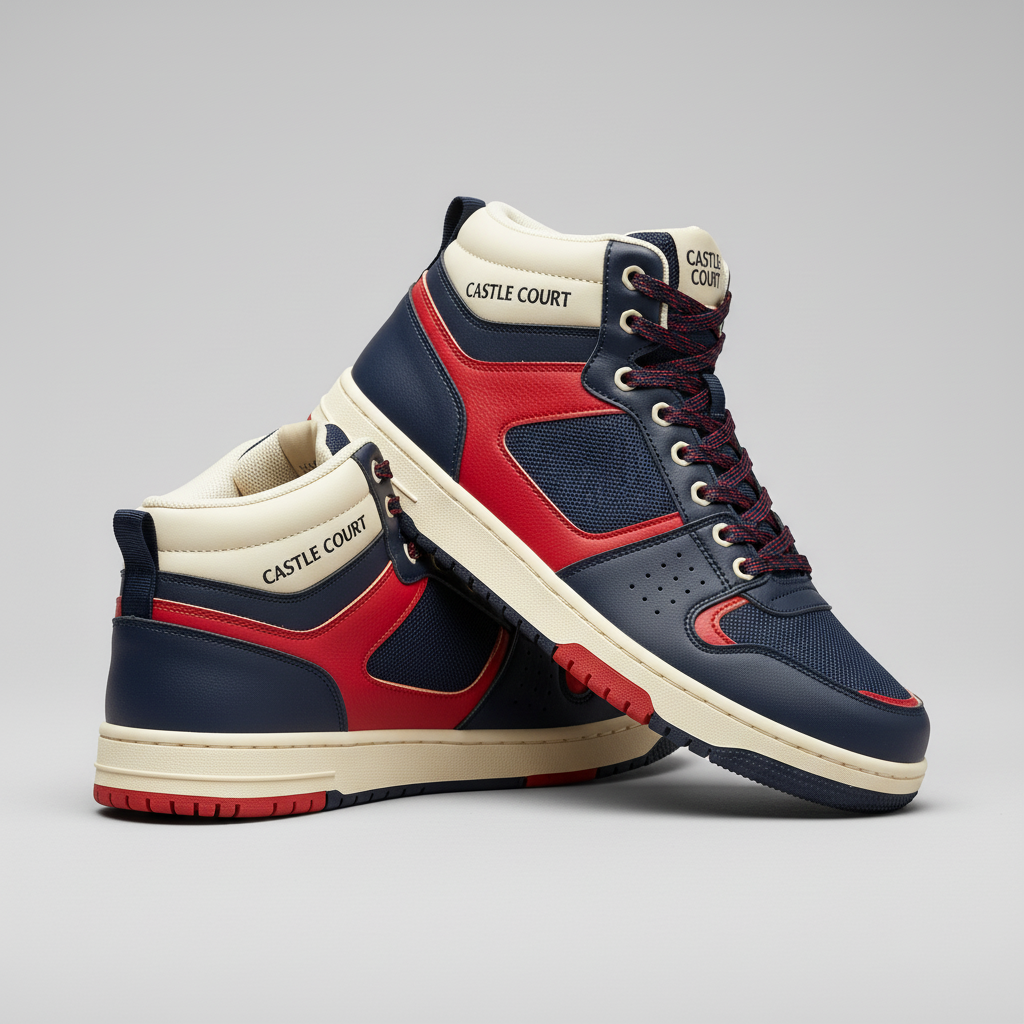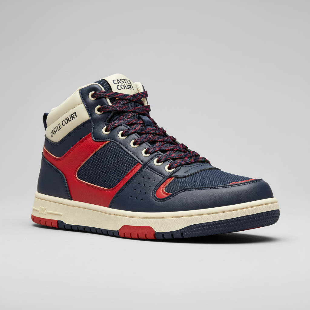 A Castle Court közepes szárú kosárlabda cipő a klasszikus sportstílus és a modern utcai viselet tökéletes ötvözete.