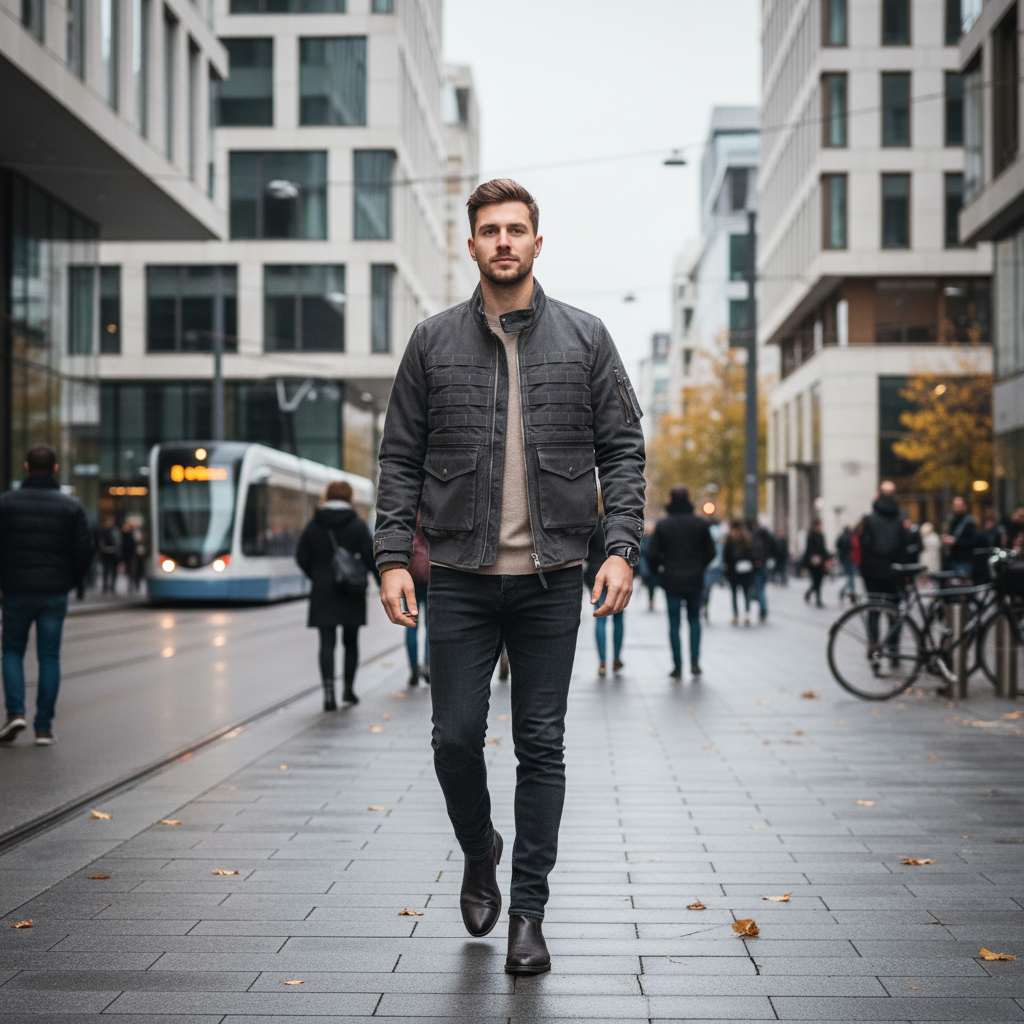 Ideális választás azoknak a férfiaknak, akik tartós, mégis divatos ruhadarabot keresnek az őszi hónapokra.