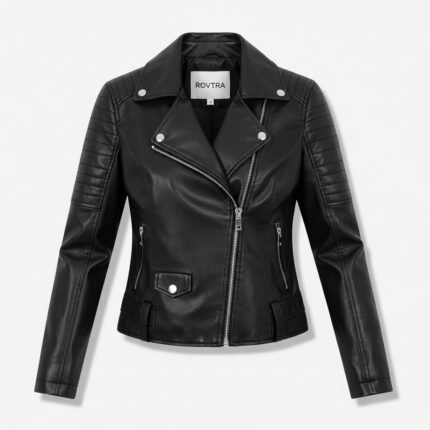 ROVTRA Női Műbőr Dzseki – Modern Motoros Stílusú Bőrkabát Streetwear Viseletre