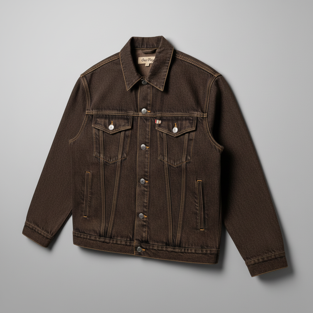 Designer Denim Kabát Kontrasztos Részletekkel Oversize Pamut