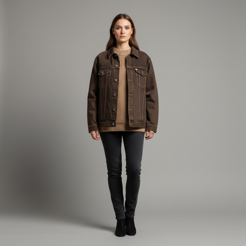 Az oversize denim dzsekit, amely tökéletes választás a kényelmes, mégis stílusos réteges öltözködéshez.