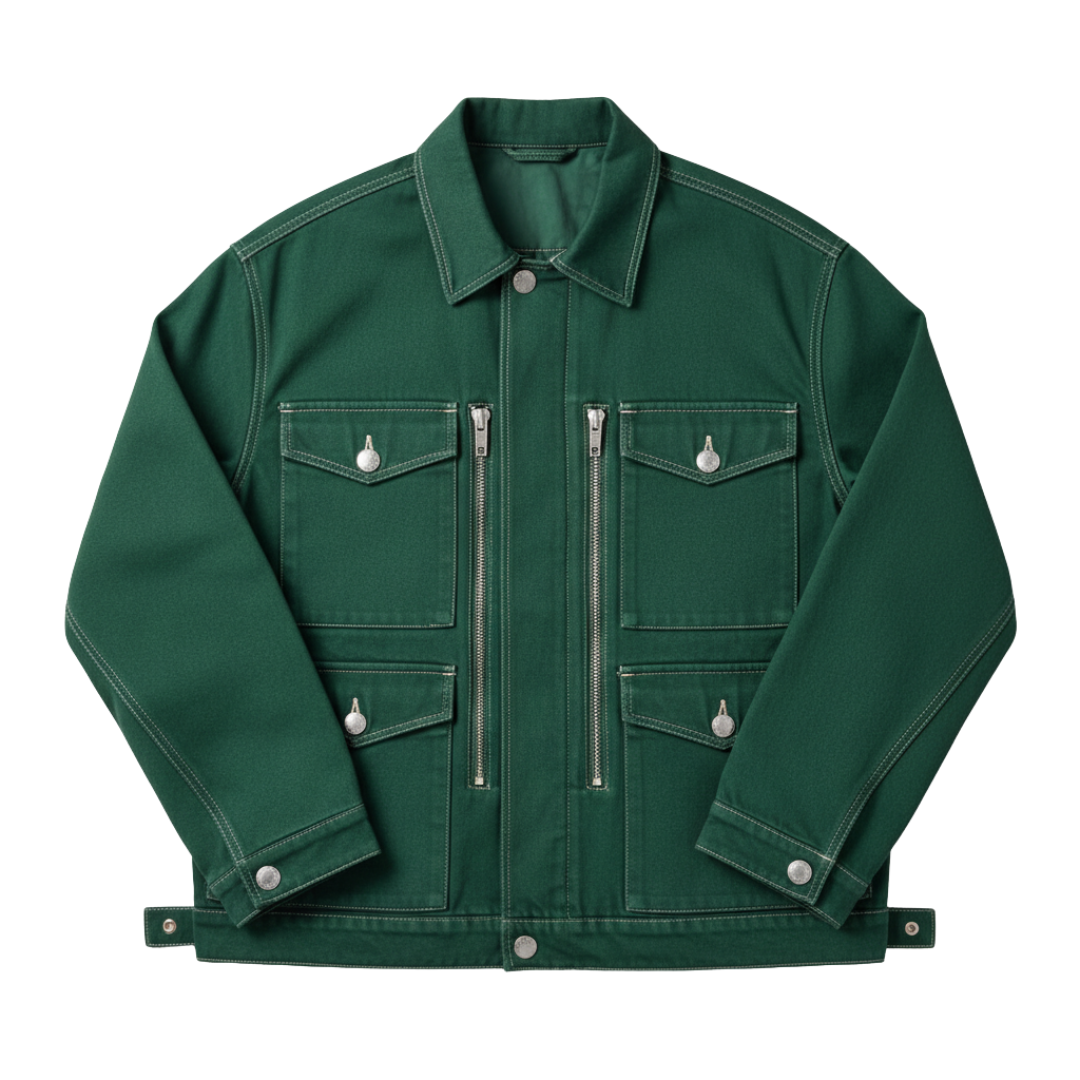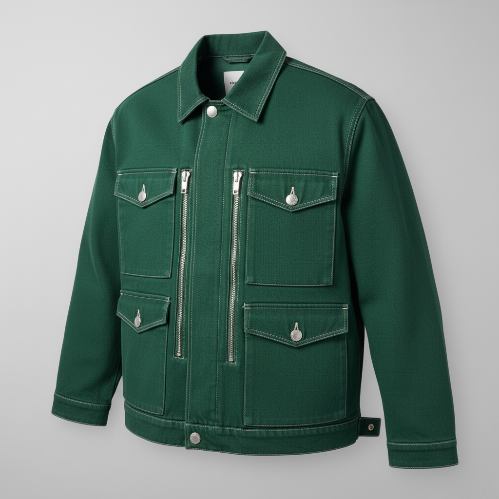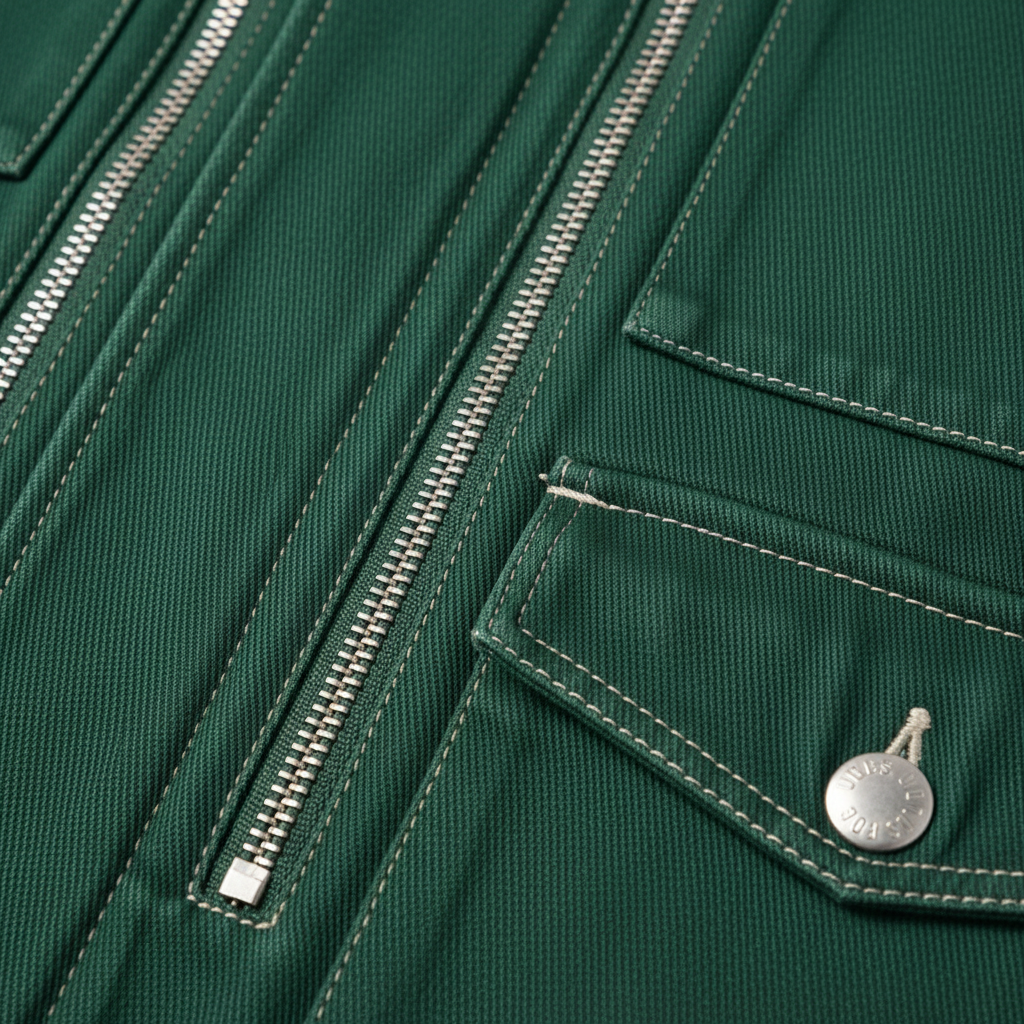 A tartós pamut twill anyagból készült dzseki számos zsebbel rendelkezik,
