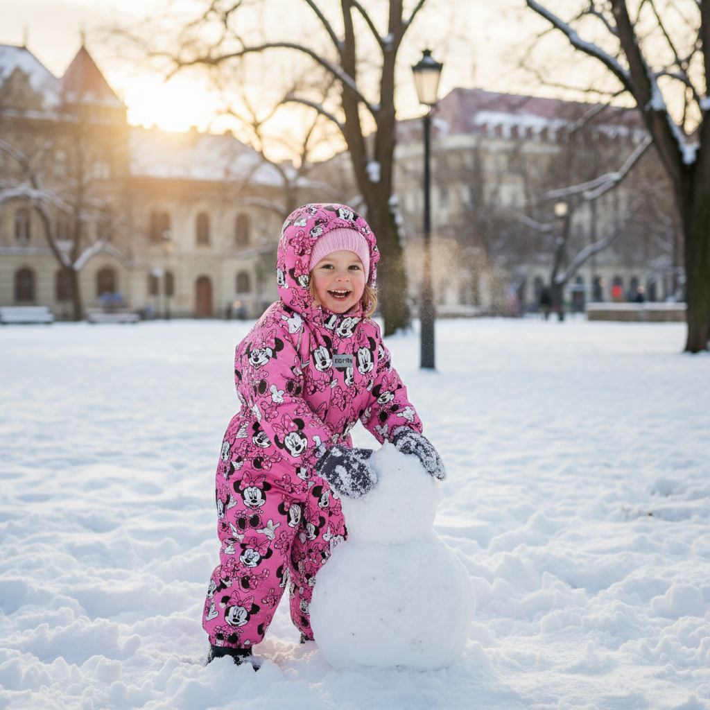 Tartsa melegen és stílusosan gyermekét a leghidegebb napokon is ebben a bájos ROVTRA Minnie Mouse téli overálban! A kiváló minőségű, bélelt kialakítás tökéletes védelmet nyújt a hó és a szél ellen, miközben a vidám Disney minta garantálja a jókedvet. Ideális választás téli sétákhoz, szánkózáshoz vagy akár az óvodába menet.